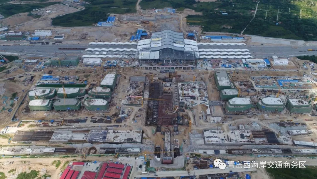青島西站換乘中心及配套工程完成13個單體建筑主體結(jié)構(gòu)封頂